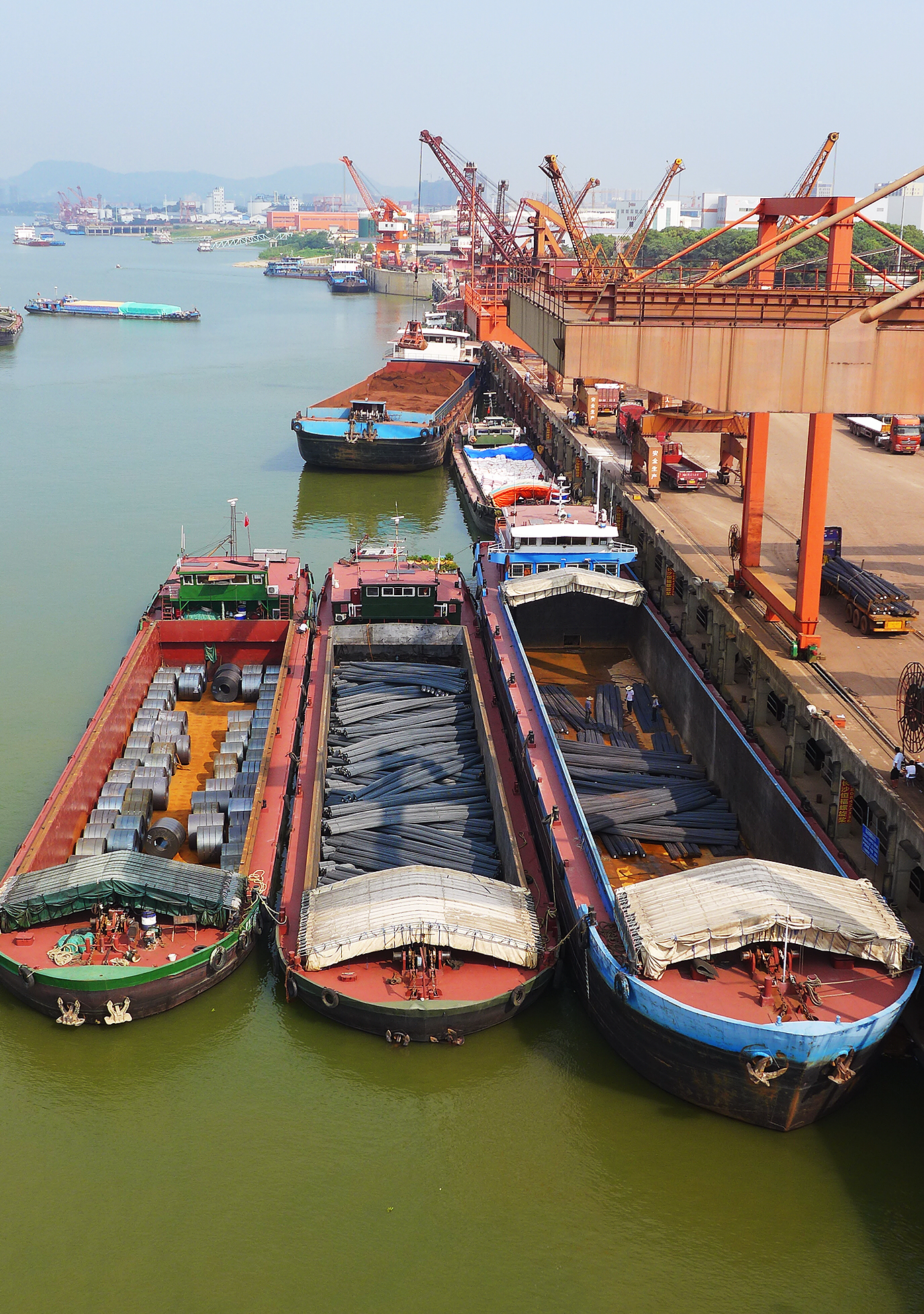 9月5日,長沙新港碼頭貨物裝卸呈現(xiàn)一派繁忙景象。借助“一帶一路”倡議和長江經(jīng)濟(jì)帶國家戰(zhàn)略。