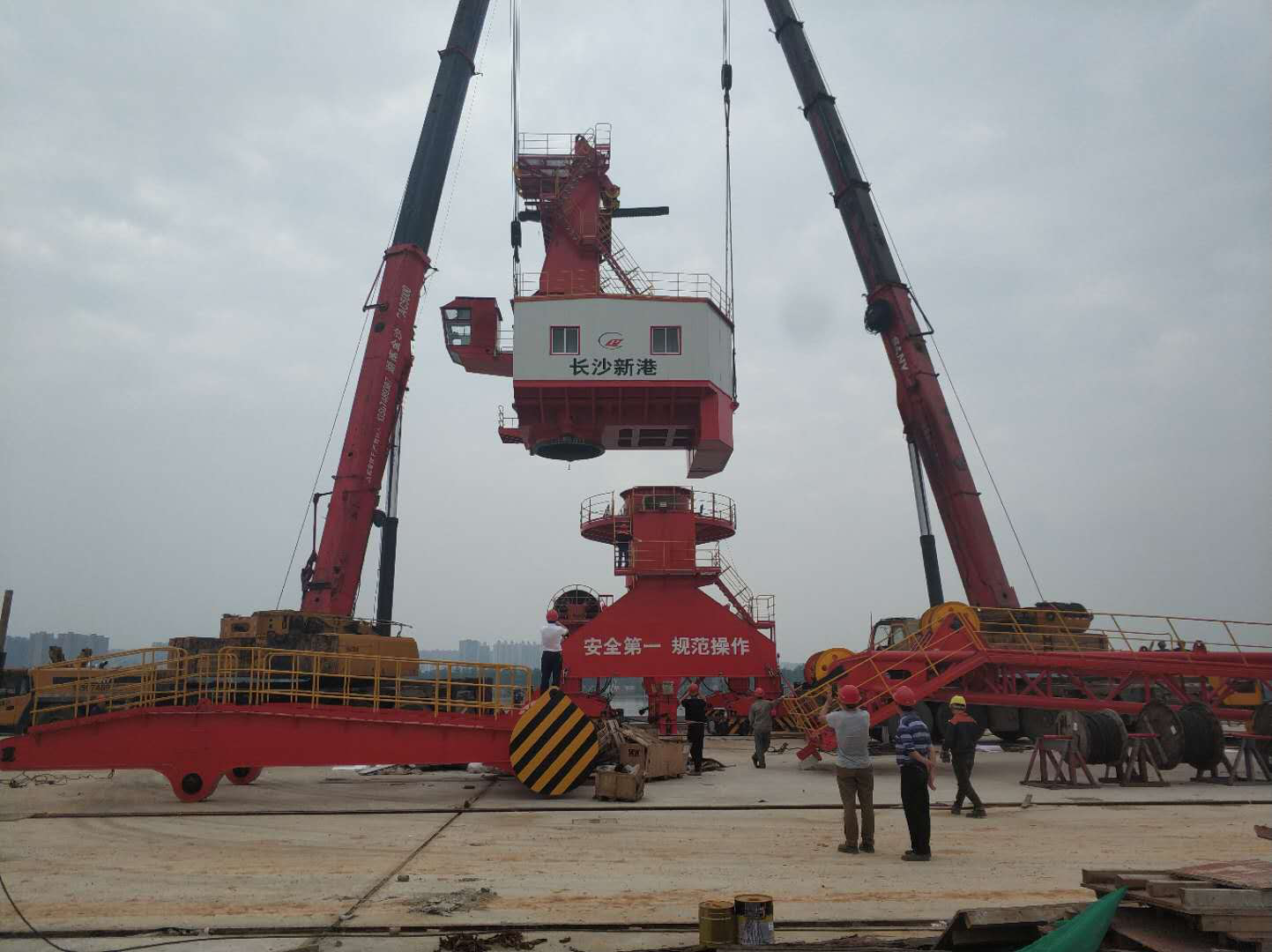 南片生產(chǎn)添助力 門座式起重機(jī)順利安裝 長沙港霞凝港區(qū)三期工程上游新建2000噸級(兼顧3000噸級)多用途泊位2個(gè),滾裝泊位1個(gè)。滾裝泊位目前已完成土建實(shí)體、混凝土道路施工,配套鋼引橋制作安裝、躉船制安錨定及兩者的連接工作,已經(jīng)具備投產(chǎn)條件;多用途泊位主體工程已基本完成,正在進(jìn)行附屬工程掃尾工作。 長沙港霞凝港區(qū)三期工程上游多用途泊位計(jì)劃配置2臺門座式起重機(jī);3月上旬,湖南中鐵五新重工有限公司港機(jī)安裝隊(duì)開始安裝,經(jīng)過一個(gè)多月不懈努力,大車行走結(jié)構(gòu)、轉(zhuǎn)臺、臂架、圓通門架等都已現(xiàn)場組裝完成。5月4日、6日,25t-25m、45t-25m門座式起重機(jī)順利完成轉(zhuǎn)臺及臂架等上部結(jié)構(gòu)的合攏,主體結(jié)構(gòu)一次性吊裝成功。在設(shè)備構(gòu)件吊裝前,新港公司組織專家對吊裝方案的安全性進(jìn)行了專家論證,確?蚣艽a頭承受荷載不大于設(shè)計(jì)荷載,以保證機(jī)械設(shè)備吊裝安全。