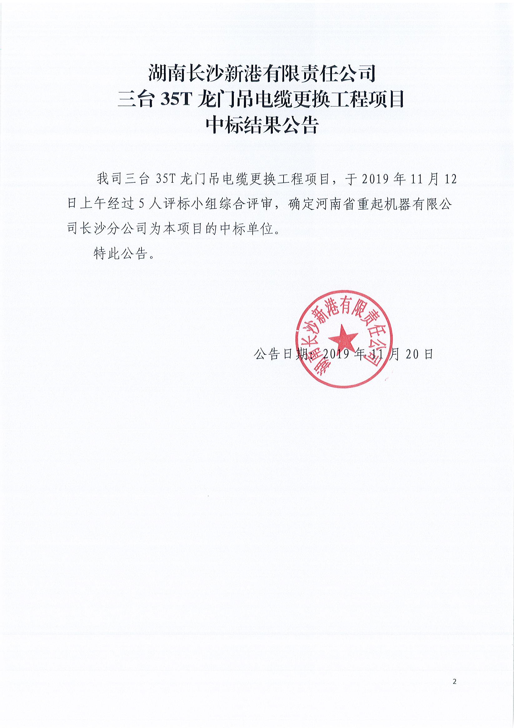 三臺35T龍門吊電纜更換工程項目中標(biāo)結(jié)果公告