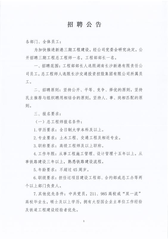 湖南長沙新港有限責(zé)任公司招聘公告