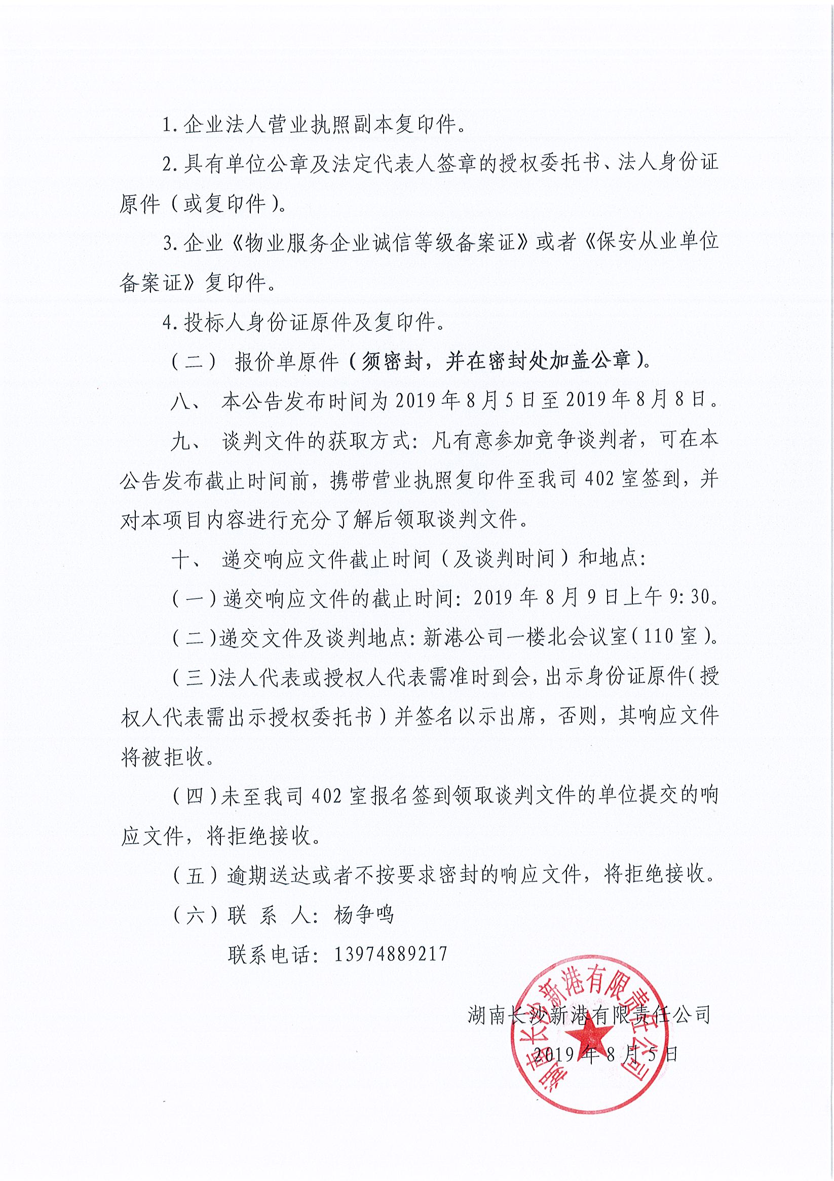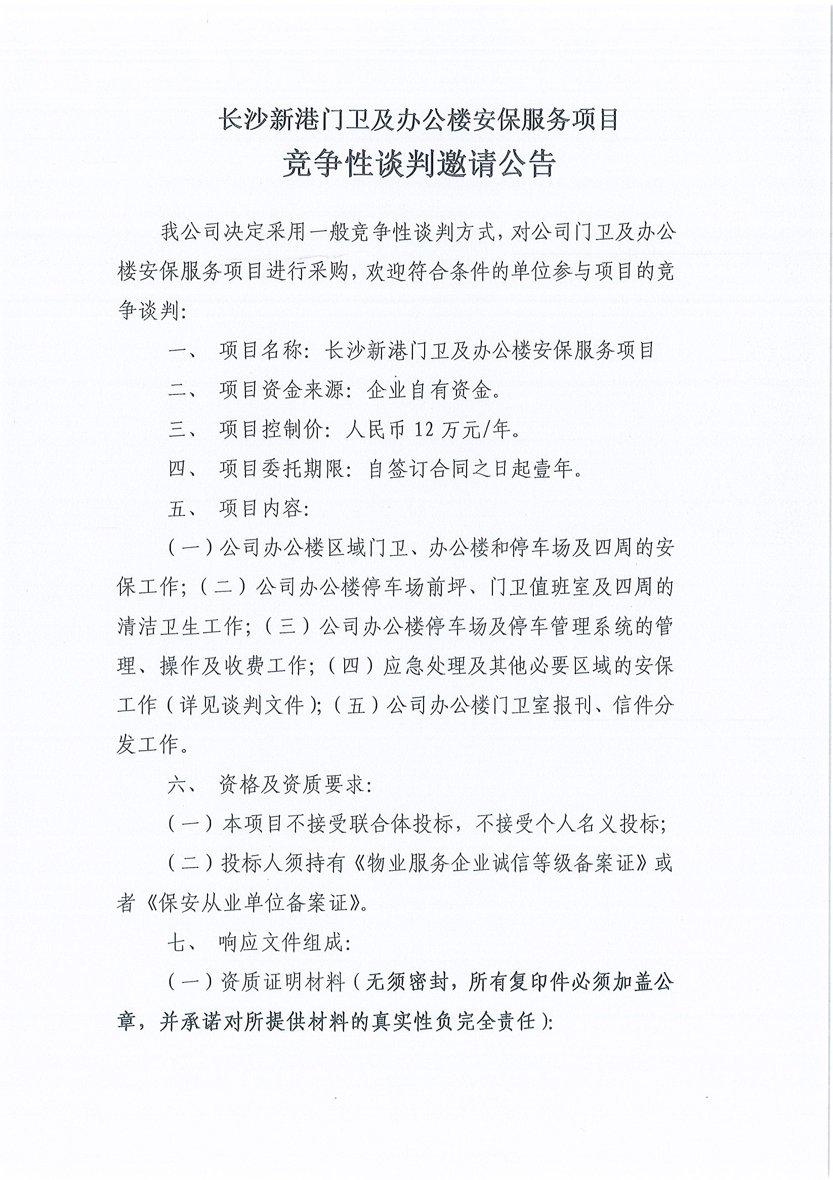 長沙新港門衛(wèi)及辦公樓安保服務項目競爭性談判邀請公告