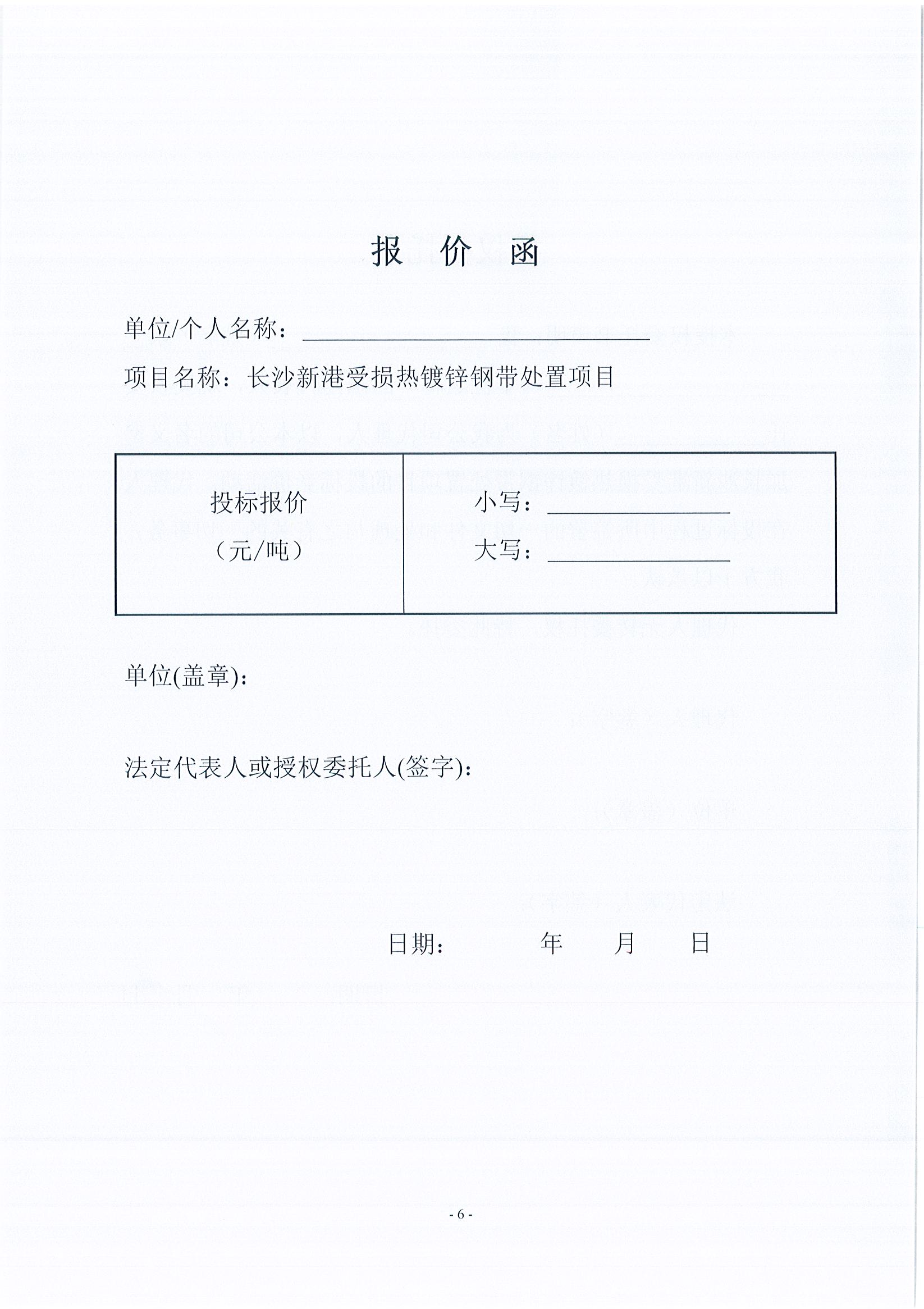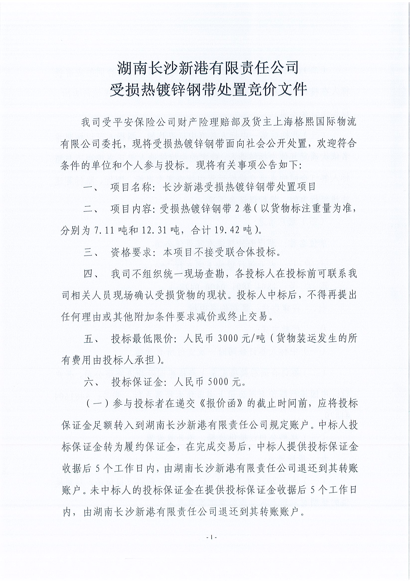 湖南長沙新港有限責(zé)任公司受損熱鍍鋼帶外置競價文件