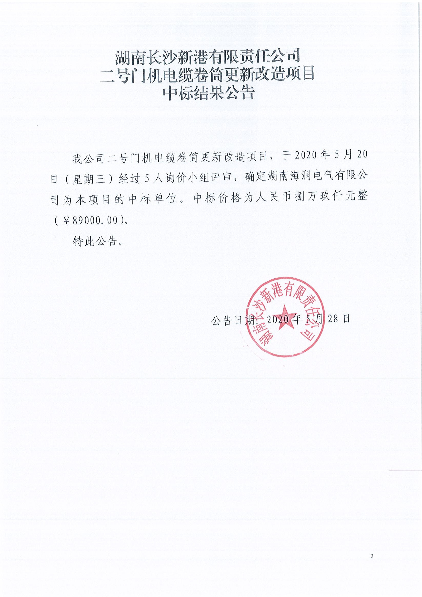 二號(hào)門(mén)機(jī)電纜卷筒更新改造項(xiàng)目《中標(biāo)結(jié)果公告》