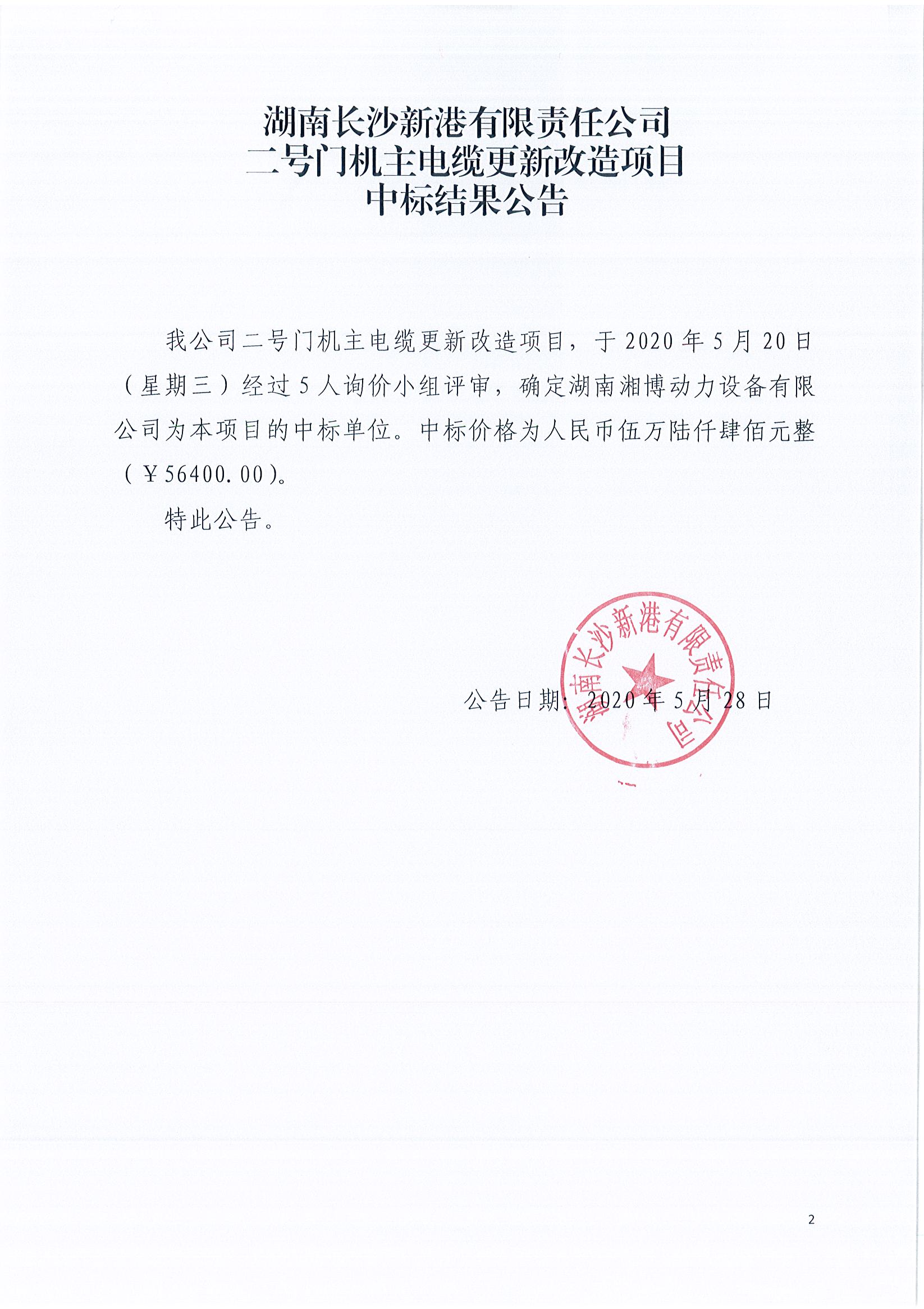 二號門機(jī)主電纜更新改造項目《中標(biāo)結(jié)果公告》